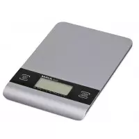 Listová váha moderného dizajnu s veľkým displejom a predným zaoblením. Materiál plast, povrch strieborný matný. Vybavená jedným ovládacím tlačidlom, funkciou automatického vypnutia a automatického vynulovania, s prepínaním g / Ib / oz / ml. Súčasťou váhy sú 3 AAA batérie 1,5 V. Rozmery 160 × 230 × 18 mm.