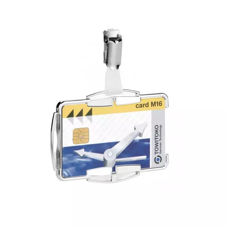 Pretože osobné údaje sú citlivé, je potrebná maximálna ochrana. Visačky, puzdro a obal ochraňujú RFID karty pred neoprávneným čítaním osobných údajov.Otvorená verzia visačiek v atraktívnom dizajne vhodná pre 1 RFID kartu. Otočný klip, možnosť použitia visačky na výšku alebo na šírku. Kombinovateľné s retiazkou, textilným remienkom alebo výsuvným