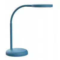 sklopná a otočná plastová svetelná hlava priemeru 11,8 cm, sklopné kovové rameno dĺžky 35,8 cm s gumovým poťahom, vypínač na hlave lampy. Farba atlantická modrá.