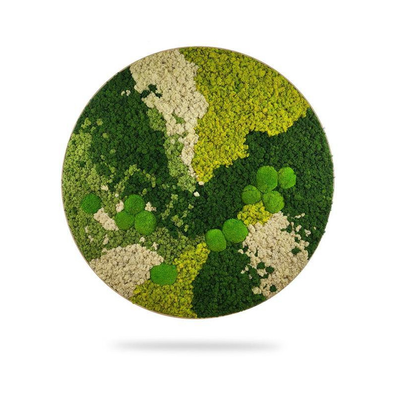 Machový obraz kruh ORTHO SPRING, priemer 40cm, dubový rám