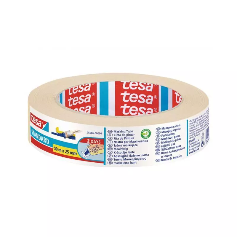 Viacúčelová papierová páska na univerzálne použitie pre základné maliarske práce a maskovanie. Odstrániteľná do 2 dní bez zanechania stôp lepidla. Rozmery 25 mm × 50 m.