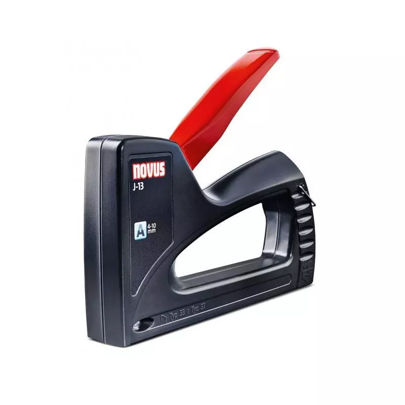 Malá ručná nastreľovačka s vysokokvalitným plastovým krytom na univerzálne použitie, napr. na rýchle napnutie tkaniny do rámu. Spodný plniaci zásobník s bezpečnostnou poistkou na ľahké plnenie spinkami, zámok rukoväte pre skladovanie, kontrolné okienko na sledovanie stavu naplnenia zásobníka. Kapacita: (A) spinky 140 ks.