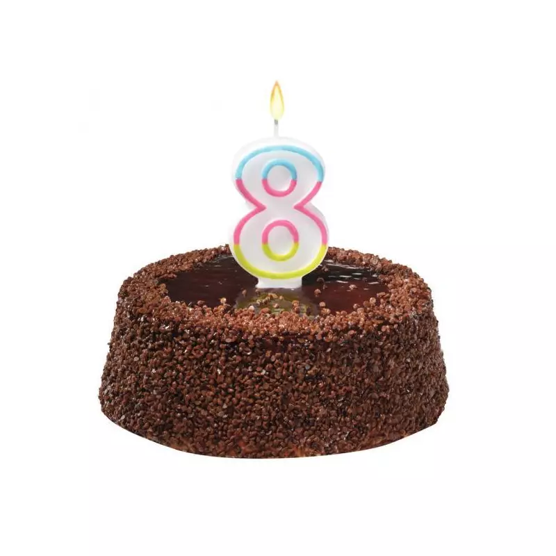 Sviečka `8` - výška: 9 cm, balenie na blistri.