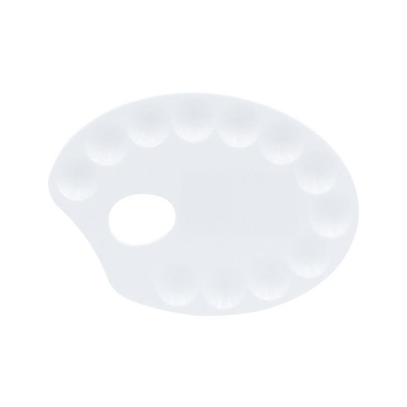 Praktická maliarska paleta na zmiešanie farieb je vyhotovená z bieleho plastu, čo umožňuje jej jednoduché vymývanie a údržbu. Vďaka ľahkému materiálu sa hodí najmä na výtvarné aktivity školákov.