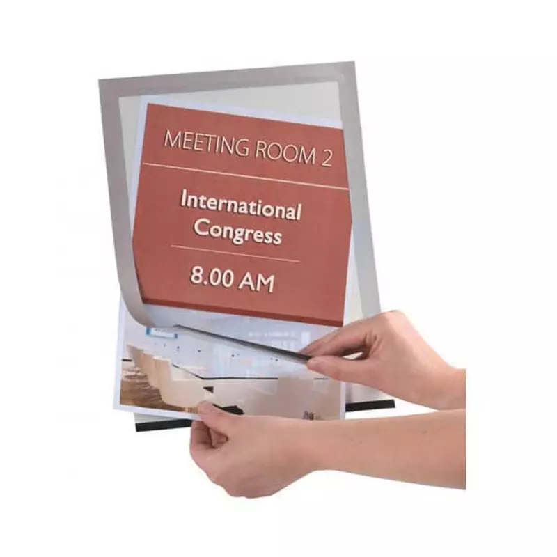 Informačné samolepiace vrecko na prospekty s rámom. Výklopná magnetická predná strana pre rýchlu a ľahkú výmenu dokumentov formátu A4. Samolepiaci podklad priľne na všetky hladké povrchy, ľahko ho odstránite a opätovne prilepíte. Materiál plast. Formát A4. Balenie 2 kusy. Farba strieborná.