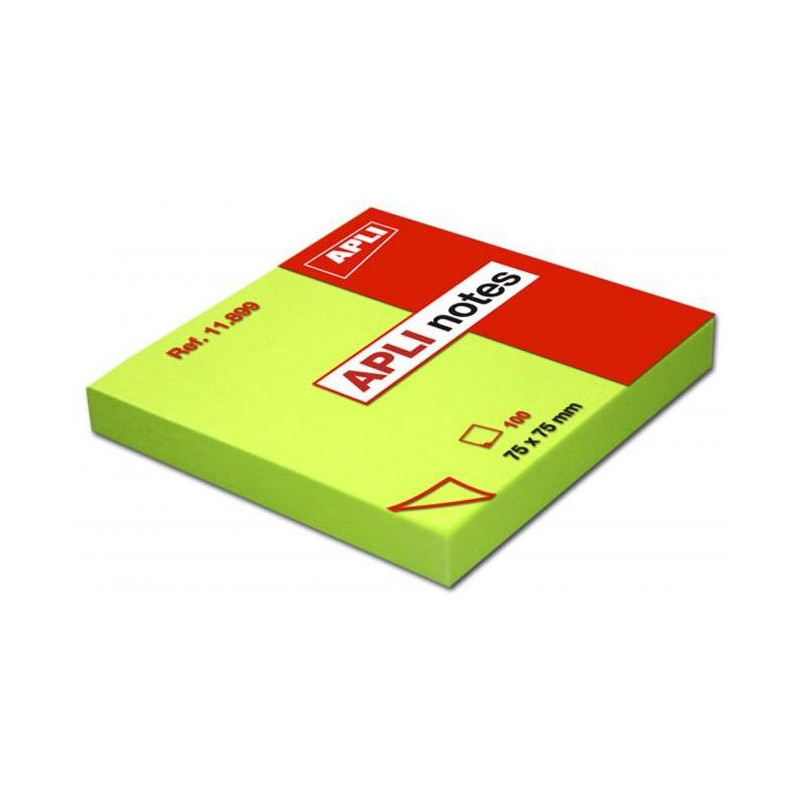 Samolepiaci bloček jednotlivo balený po 100 lístkov. Výrazná zelená farba. Rozmery 75 x 75 mm. Väčšie balenie 12 ks.
