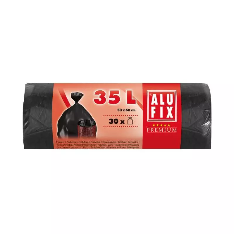 Vrecia na odpadky čierne, vyrobené z HDPE materiálu bez zápachu, vhodné do domácnosti alebo kancelárie na ľahší bežný odpad. Rozmery vreca 53 x 60 cm, objem 35 l,, množstvo 30 ks na rolke.