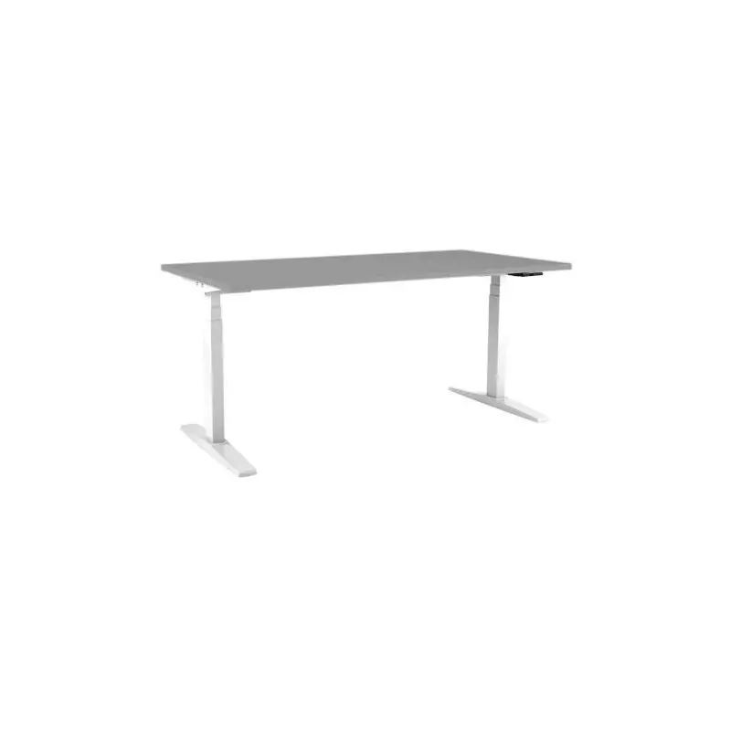 Výškovo nastaviteľný stôl BASIC, 2-motorový, 138x80 cm, podnož biela + doska sivá